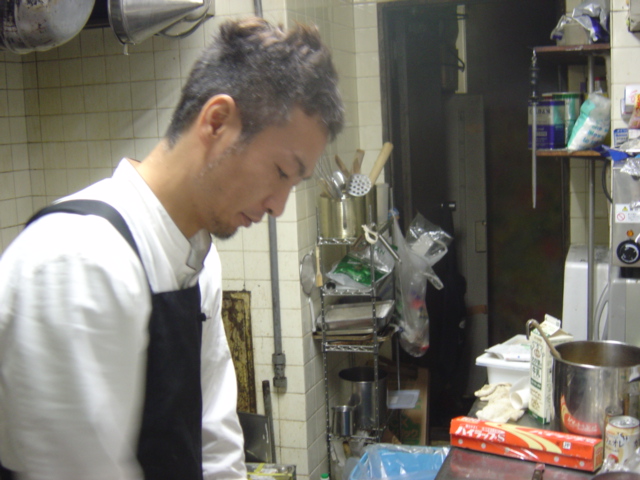 ところで、写真の彼は私ではない。私の修行時代の戦友千葉君である。おそらく彼の力を一番理解しているのは私だろう。(性格も・・・)今は縁があり、私に力を貸してくれている。もっとも、私は彼の料理を見ながらソムリエとしてワインをサーヴし、彼の料理を食べたお客様の感嘆の声を聞いて5年も過ごしてきたから、私にとっては尊敬するに値する人物である。(ちなみに同じ年)